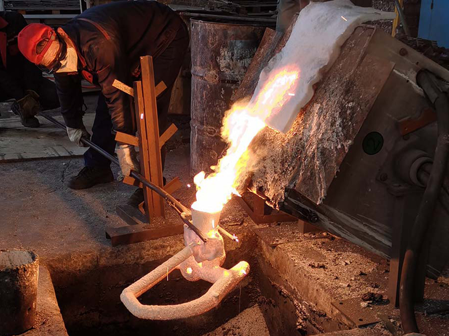 Molten metal is poured directly into the sand mold. The heat causes the foam pattern to vaporize instantly, allowing the liquid metal to fill the cavity and replicate the original design with high precision.